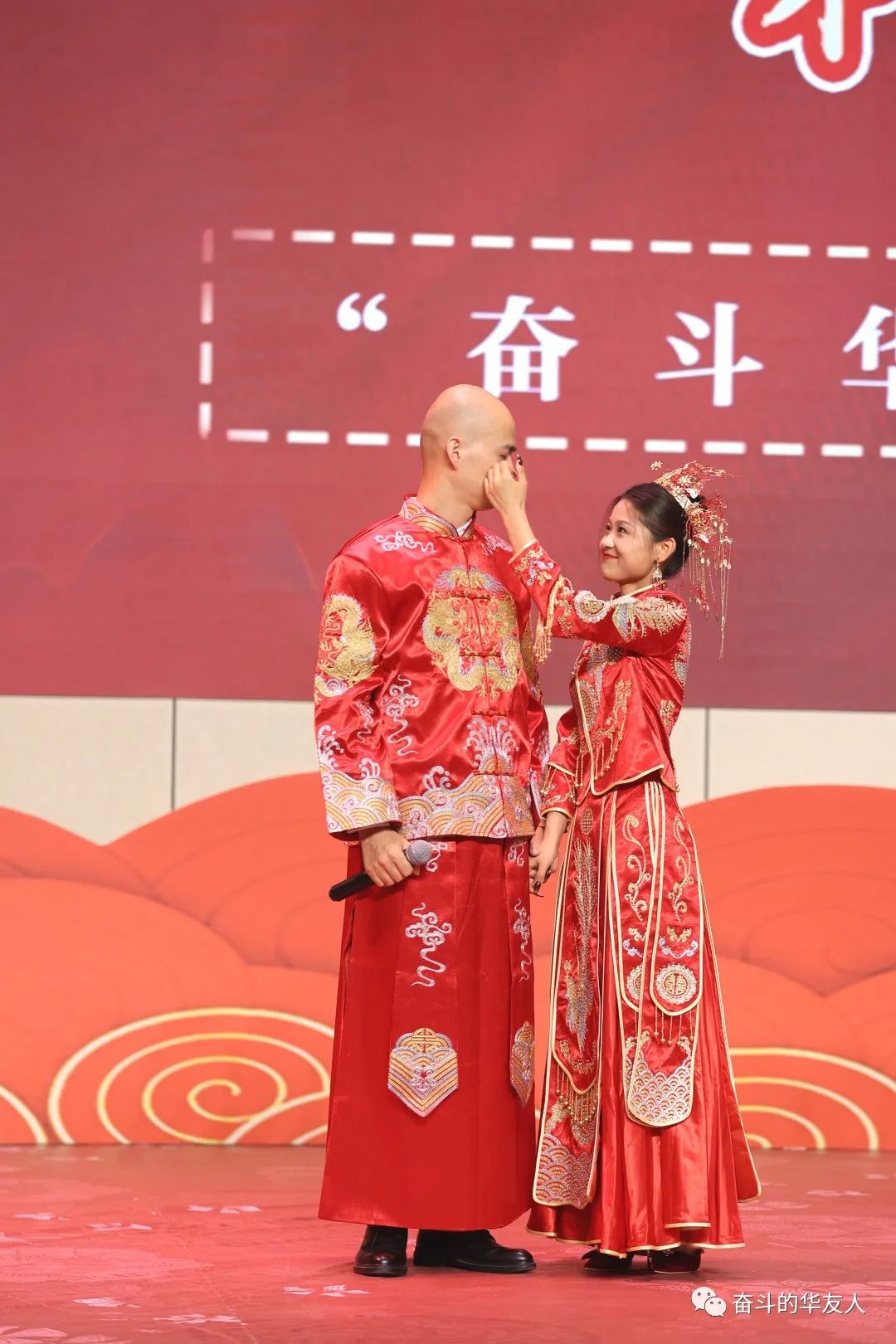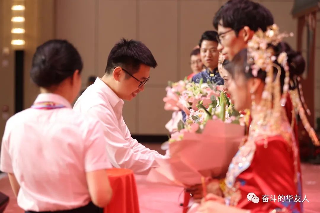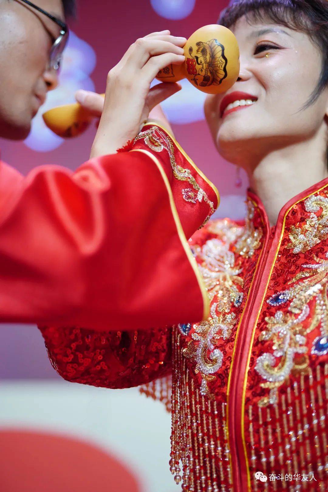 “新人行合巹之禮,甘苦共嘗……。新人行結(jié)發(fā)禮。金剪裁出愛(ài)情果,為君結(jié)發(fā)許終生。夫妻對(duì)拜,一叩首。禮請(qǐng)新人相對(duì)而立,共同宣讀夫妻同心詞。”臺(tái)上,新人們舉行著各項(xiàng)禮節(jié)儀式,臺(tái)下,賓朋們滿眼祝福,看著他們來(lái)到華友、相識(shí)華友、相知華友、相愛(ài)華友再到現(xiàn)在安家華友,感受這花開(kāi)結(jié)果的過(guò)程。