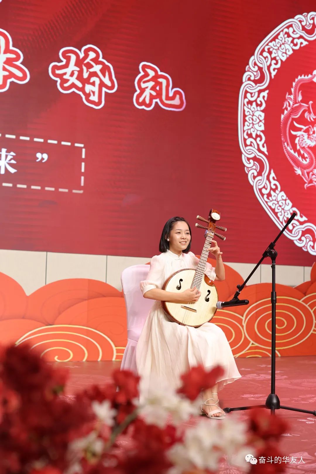 “從此刻起,你們正式成為結(jié)發(fā)夫妻,禮成!”儀式結(jié)束也把氛圍推到了沸點(diǎn)。大家紛紛摩拳擦掌想上臺(tái)為新人送上祝福,這邊2022屆大學(xué)生代表秦碧徽和她的男朋友姚云飛為新人獻(xiàn)上了一曲中阮彈唱,祝福新人幸福天長(zhǎng)地久。那邊新娘閆寧寧一首《約定》唱出了愿得一人心、白首不相離的相約。臺(tái)上還進(jìn)行了投壺、花開(kāi)富貴等游戲。