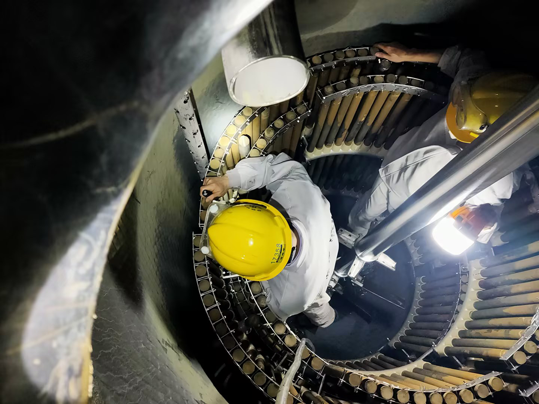 數(shù)不清多少個日夜,他們蜷縮在一個小空間里面。或是檢查設(shè)備,或是安裝管道,或是日常清理,燈光下的他們閃爍著華友人自強不息的精神。