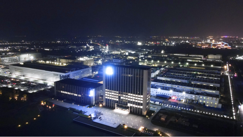 ▼燈火下拔地而起的廣西基地