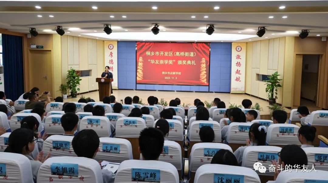 錦繡年華,友你同行;崇智尚德,學(xué)而致遠(yuǎn)。近日,2023年桐鄉(xiāng)經(jīng)濟(jì)開發(fā)區(qū)(高橋街道)“華友崇學(xué)獎”頒獎典禮在啟新學(xué)校報(bào)告廳舉行。