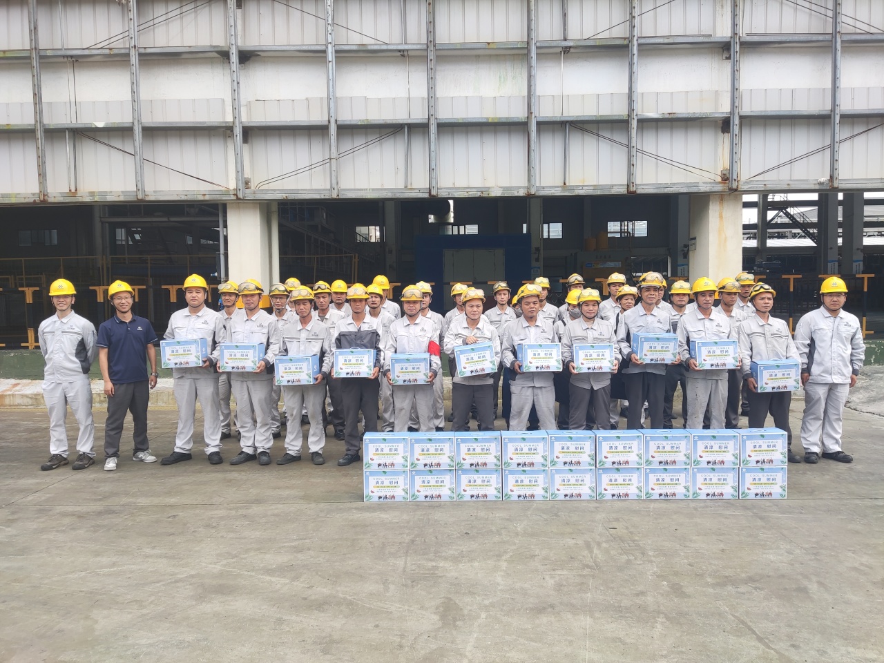 慰問活動中,各工會主席及單位行政負(fù)責(zé)人親手將慰問品發(fā)放到員工手上,耐心叮囑大家在堅守一線工作時務(wù)必做好防暑降溫工作。華友廣西產(chǎn)業(yè)園工會聯(lián)合會主席徐學(xué)良在參加華友工程公司工會慰問活動時強調(diào):“當(dāng)前天氣炎熱,集團領(lǐng)導(dǎo)始終心系奮戰(zhàn)在一線的各位奮斗者,特別囑咐我們要扎實做好高溫慰問工作。大家在堅守崗位的同時,一定要注意勞逸結(jié)合,合理安排工作與休息時間,切實把防暑降溫措施落實到位。更要時刻牢記,將防暑降溫與安全生產(chǎn)緊密結(jié)合,絲毫不能松懈,確保每一位員工都能開開心心上班來,平平安安回家去?!?/p>