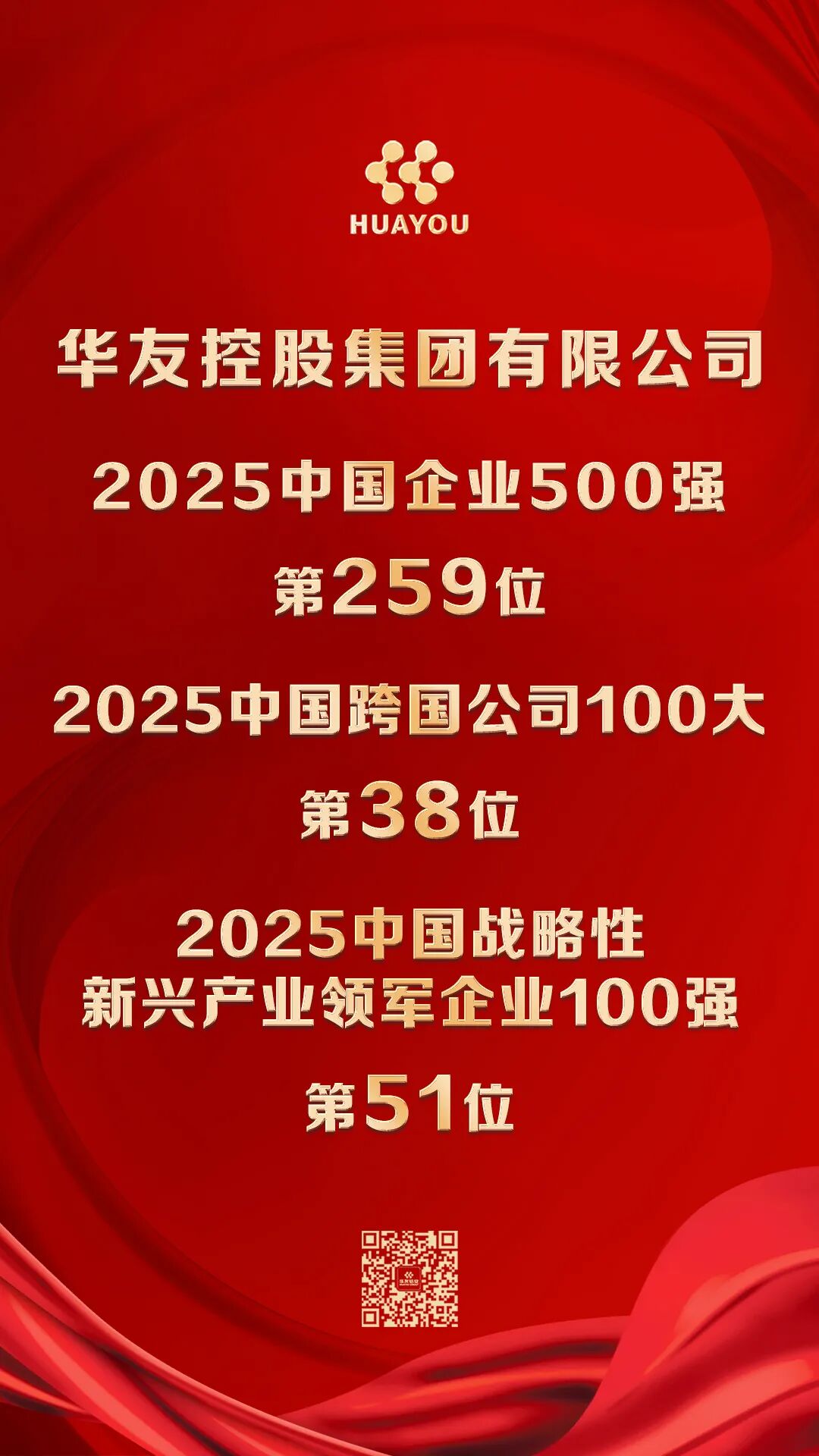 Huayou Holding Group Ranks 259th Among China's Top 500 Enterprises in 2025!