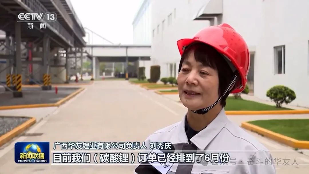 廣西華友鋰業(yè)有限公司負責人劉秀慶:“目前我們(碳酸鋰)訂單已經排到6月份,產線都在滿負荷生產狀態(tài)。”