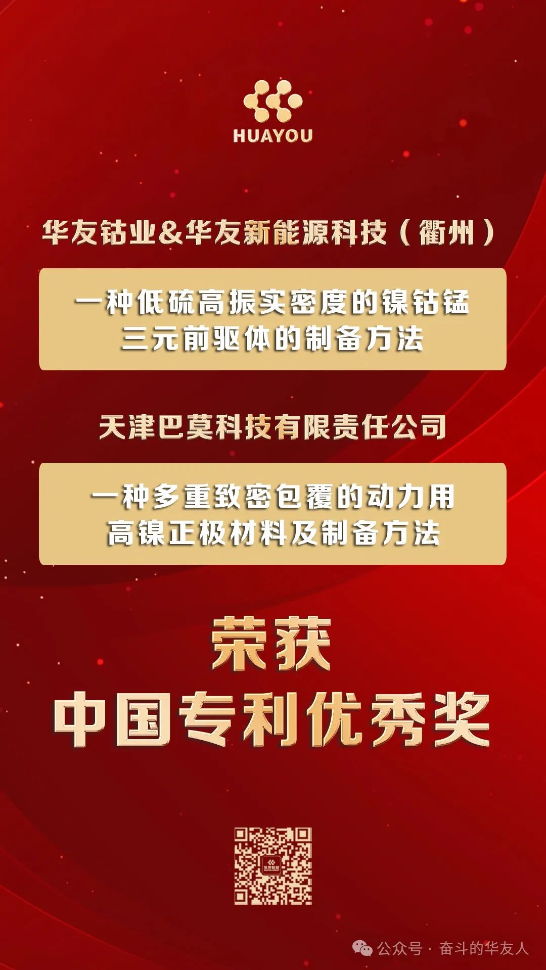 國家級(jí)榮譽(yù)+2!華友獲第25屆中國專利獎(jiǎng)