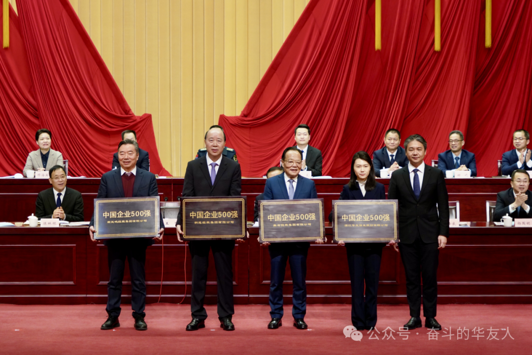 ▲桐鄉(xiāng)市委書記王堅為“中國qm球盟會·(中國)球盟會500強”桐鄉(xiāng)上榜qm球盟會·(中國)球盟會授牌,華友控股集團副董事長陳曉琳(右二)代表華友鈷業(yè)接受表彰。