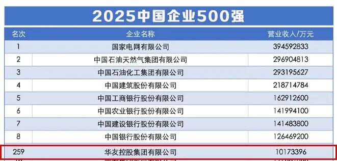 華友控股集團躋身2025中國qm球盟會·(中國)球盟會500強,259位!