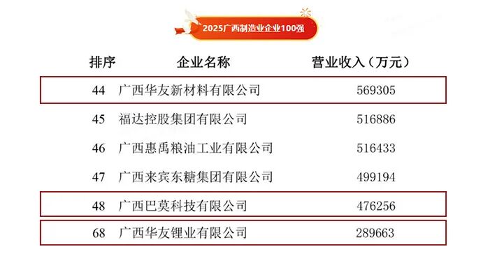 近日,2025廣西qm球盟會(huì)·(中國(guó))球盟會(huì)100強(qiáng)、廣西制造業(yè)qm球盟會(huì)·(中國(guó))球盟會(huì)100強(qiáng)榜單正式發(fā)布,華友廣西園區(qū)多家子公司強(qiáng)勢(shì)登榜,以集群之勢(shì)展現(xiàn)了園區(qū)雄厚的制造實(shí)力與卓越發(fā)展成就,為華友廣西園區(qū)建設(shè)五周年交出了一份璀璨的成績(jī)單。