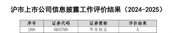A類(lèi)!華友鈷業(yè)獲上交所信息披露最高評(píng)價(jià)