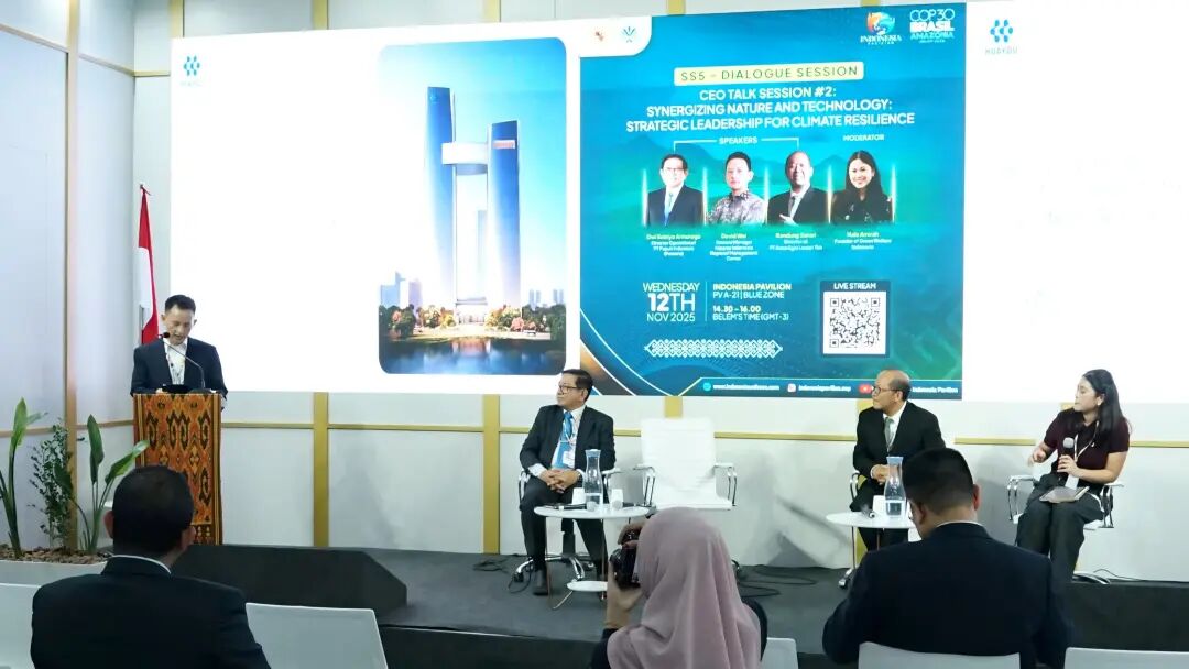 當(dāng)?shù)貢r(shí)間11月12日,COP30印尼館舉辦了主題為“協(xié)同自然與科技:氣候韌性戰(zhàn)略領(lǐng)導(dǎo)力”的CEO氣候?qū)υ?huà)(CEO Climate Talks)活動(dòng),華友印尼區(qū)域管理中心總經(jīng)理韋林奎代表公司,與來(lái)自印尼PT Pupuk Indonesia和Astra Agro Lestari Tbk的嘉賓共同參與。