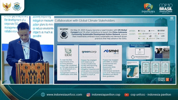 11月10日至21日,《聯(lián)合國(guó)氣候變化框架公約》第三十次締約方大會(huì)(COP30)在巴西貝倫(Belém)舉行。全球約193個(gè)國(guó)家/締約方,逾56000人次參與了本次活動(dòng)。華友作為印尼鎳下游產(chǎn)業(yè)化轉(zhuǎn)型的“核心推動(dòng)者”之一、綠色減碳優(yōu)秀qm球盟會(huì)·(中國(guó))球盟會(huì)代表,受印尼環(huán)境部邀請(qǐng)參加本次活動(dòng),響應(yīng)大會(huì)主題。