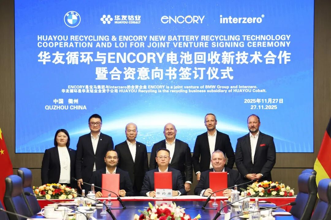 近日,浙江華友循環(huán)科技有限公司與Encory(寶科利)集團(tuán)正式簽署電池回收新技術(shù)合作暨合資意向書。BMW(寶馬)集團(tuán)戰(zhàn)略投資高級副總裁雷納·福雷爾、Interzero(茵特保)集團(tuán)董事長史偉浩、華友鈷業(yè)董事長陳雪華見證簽約。