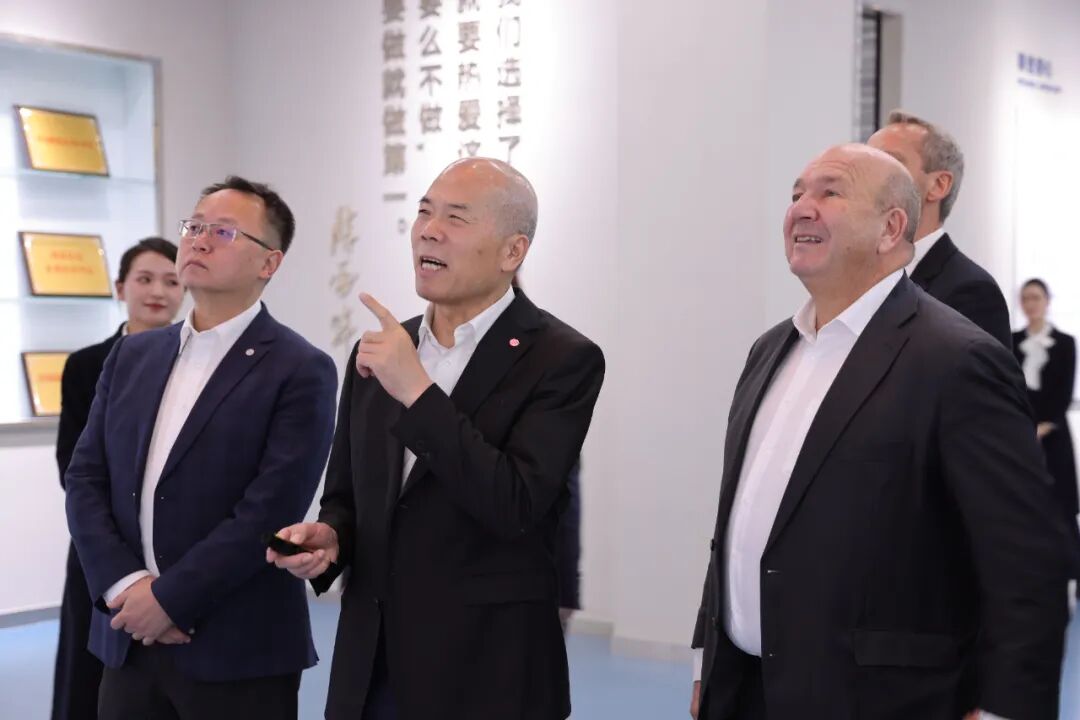 雷納·福雷爾博士一行參觀華友展廳、材料產(chǎn)線及研究院
